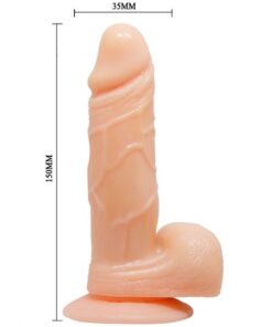 It is flexible and soft in texture for the most real feel. Its smooth, textured shaft features realistic elements like a bulbous head and firm testicles. Thanks to a suction cup on the base you can fix it on any smooth surface to use it without the help of your hands.