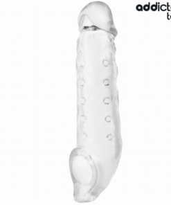 The Addicted Toys Penis Sleeve in size M is designed to cover the penis and provide an increase in both length and girth, offering an enhanced experience during sexual intercourse. This product is Made from high quality transparent material, allowing you to view the usage process without distractions, whilst enhancing sexual performance safely and comfortably.
