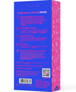Our Bwild Bunny Infinite Classic cannot be tamed. Guaranteed to please and designed to satisfy, tantalize and stimulate the G-spot and clitoris. 8 intensity levels, magnetic USB rechargeable, IPX7 certified waterproof and 100% body safe – Bwild Bunny Infinite Classic is your newest BFFL.