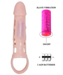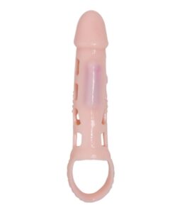 Penis extender sleeve with built-in bullet and strap for the testicles to increase both thickness and length and thus increase the pleasure of both during intercourse. It has a realistic and functional design since the reliefs of the contours serve as a stimulant for your partner and it is made of high quality TPR.