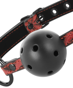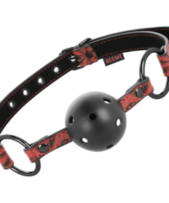 Ideal for slaves in training, this gag fits snugly over your submissive companion’s mouth to keep them quiet. It incorporates four ventilation holes for greater safety and comfort.