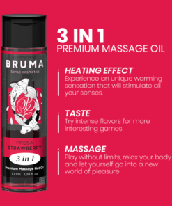 In summary, BRUMA’s Premium Heat Effect Massage Oil is a high-quality product that combines luxury, safety and versatility. With its relaxing heat effect, variety of flavors, and its commitment to health and sustainability, this massage oil is the perfect choice for couples looking to elevate their intimate experience and relax to the maximum.