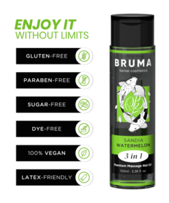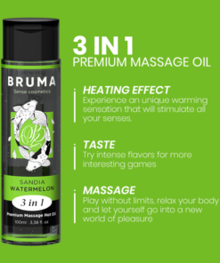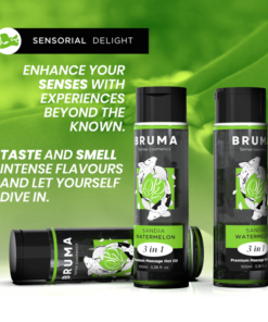 The Premium Heat Effect Massage Oil watermelon flavor from the BRUMA brand is a true gem in the world of well-being and intimacy. This exquisite product, presented in an elegant 100 ml container, is Designed to provide a unique and sensual experience, providing a relaxing and stimulating massage with a touch of warmth that makes it even more special. here Here are the highlights developed in detail: