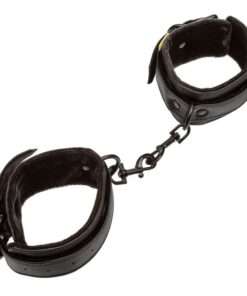 - Totally adjustable ankle cuffs with secure buckle closures Universal clasps and D-rings with swivel design for full dexterity Soft and plushy interior with a vegan leather exterior Double padded, double stitched Functional, durable and textured design
