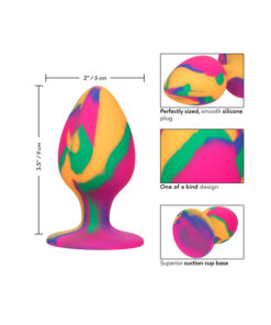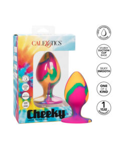 Unleash your wild side and indulge in pleasure with the trippy Cheeky Medium Tie Dye Plug. This naughty anal plus is made for a good time with the bright tie-dye design, rounded tapered probe and versatile suction cup base for extra fun play.