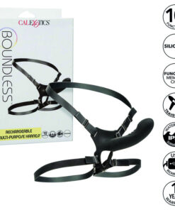 Unleash powerful penetration with the Boundless Rechargeable Multi-Purpose Harness. The ultra-powerful probe features 10 intense vibration, pulsation and escalation functions, ensuring perfect settings for your desires. Made with thick silicone for greater comfort, it includes adjustable, elastic and removable waist and thigh straps, allowing customizable fits and varied positions. The curved tip provides intense stimulation where you want it most. With a memory chip, it remembers and resumes the last function, and a travel safety lock ensures worry-free transportation. Immerse yourself in a world of unlimited pleasure with the Boundless Rechargeable Multi-Purpose Harness for an unforgettable and deeply satisfying experience.