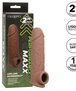 Take it to new lengths with the Performance Maxx Life-Like 7 Extension. The realistic sleeve with hollow design adds 2 inches 5 cm to its length for an enhanced pleasure experience. The built-in scrotal strap and thick sleeve provide added erection support and resistance to prolong and intensify pleasure for both partners. Increase your pleasure and never settle for less when it comes to size, our super stretchy extender with scrotum support strap will make a difference. May you and your lover long for more, more, more. Our super stretchy enhancer stretches to fit for ease of use. Premium liquid silicone is fragrance-free, phthalate-free, and maintenance-free to keep your most sensitive spots happy and healthy.