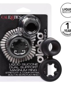 From bashful beginners to erotic experts, the Alpha Liquid Silicone Dual Magnum Ring will wrap you up tight in pleasure with the ultra plush, ultra stretchy enhancer ring. The playful ring is made from an ultra-stretchy liquid silicone with a daring dual ring design. This stretchy, comfortable cock ring is made to increase stamina, improve sensitivity and deliver superior erection support. The durable scrotum support ring lets you indulge even further into increased stamina. Look for an explosive pleasure experience while the plush ring squeezes with every movement. The premium liquid silicone is soft, smooth, durable and waterproof.