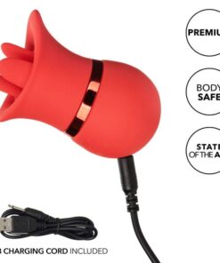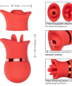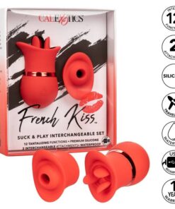 Twice the pleasure, oh la la! The sensual interchangeable set of French kissing nipples is just what you need with 2 interchangeable attachments with 12 vibration functions or 12 suction functions. The full contact scoop and triple tongue flutter teaser have been designed to perfectly contour to your most intimate pleasure points with 12 intense functions. Switch into the sensually contoured cocksucker and enjoy 12 functions of exciting sucking or indulge in a real French kiss with 12 functions of flashing action. The soft, flexible silicone and sensually contoured body allow it to deliver identified pleasure from almost any angle. Use the easy touch button to control up to 50 minutes of pleasure. Recharge your pleasure in just 1 hour with the provided USB cable in the self-selecting charging port on the massager. The mini massager’s discreet size and travel locking button make it the perfect travel companion, allowing you to embrace radiant pleasure wherever your fantasies take you.