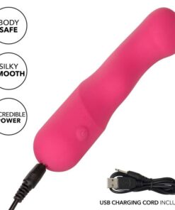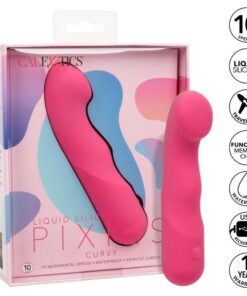 The Liquid Silicone Pixies Curvy is designed to deliver knee-shaking sensation to your favorite pleasure points. The flexible angled tip, dual sided design and 10 thrilling speeds of vibrations make this the perfect teasing travel companion. The curved massager fits in your hand to let you deliver pinpoint tantalization and thrill with contoured vibrations. Get playful with each increase of the 10 incremental speeds of vibration with the easy-touch control button. Effortlessly control pure pleasure with an easy-touch silicone button and hold for 3 seconds to turn on or off. The ultra-plush liquid silicone and uniquely flexible tip are great for exploring sensual sweet spots and intimate pleasure points with ease. With a smooth shape and supple surface, youll be able to indulge in thrilling vibrations from any angle you desire. Use the smooth single button control to enjoy up to 110 minutes of vibrating pleasure. Charge up your passion in only 1.5 hours by plugging the provided USB cable into the self-sealing charging port on the base of the massager. The slim massagers discreet size makes it the perfect travel companion, letting you embrace radiating pleasure wherever your fantasies take you.