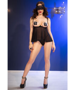 - CR-4715 babydoll set with gold chains and nipple covers.