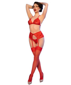 And for dessert, thongs with a spicy slit, also decorated with flirtatious bows. Included in the set are stockings, adding even more spice to this ensemble.
