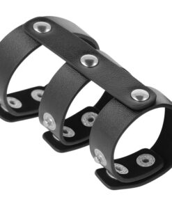 DARKNESS – ADJUSTABLE LEATHER DOUBLE PENIS AND TESTICLE RING
