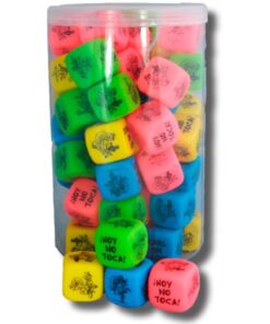 DICE OF PASSION! What position do we take today? Enjoy the chance of the dice, a great solution for sexual indecisions. These dice are 25 mm FLUORESCENT YELLOW-GREEN-PINK-BLUE COLOR. You will be surprised by its simplicity, you can take it anywhere and anywhere it will give you many joys. GIVE YOUR IMAGINATION A FREE REIN.
