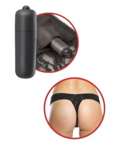 Can you keep a secret? Tucked away discreetly inside this sexy, low-rise lace thong is a hidden micro bullet designed to rock your world!