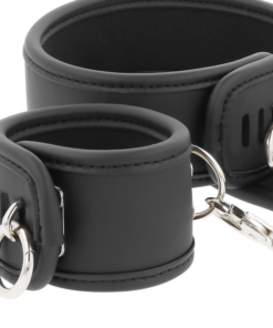 These handcuffs have the elegant aesthetics you are looking for as well as absolute effectiveness. Double layered and finished with a metal buckle, your submissive won’t be able to escape. The padded interior ensures they’ll stay comfortable no matter how much they pull or how long they play. The set has a connecting chain to immobilize from the neck to the hands.