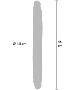 Experience unmatched realism with the Get Real Skin collection by ToyJoy. This double-ended silicone dildo with foreskin features a movable foreskin that delivers an exceptionally lifelike sensation. Thanks to its innovative dual-density technology, the soft outer skin glides smoothly over a firmer inner core, offering a natural and realistic feel. Crafted from premium liquid silicone, this 46 cm double dildo provides authentic skin elasticity and a movable foreskin, making it an outstanding alternative to a real penis. Body-safe and designed for versatile pleasure, it is perfect for solo play or shared experiences. It also includes a practical canvas storage bag for discreet keeping. Get ready for reality with this 46 cm silicone double dildo with foreskin!