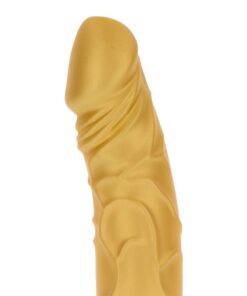 This golden pleasure provider has a lifelike silhouette featuring realistic detailing such as pulsing veins and a pronounced tip.