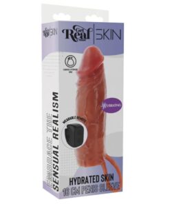Feel the future of realism with the 16 cm Hydrated Skin vibrating penis sleeve. Its revolutionary double-layer silicone construction includes lubricant sealed between the layers for an unmatched silky-smooth sensation. The textured inner tunnel enhances every thrust, while the flexible base ensures a perfect fit. Featuring 10 vibration modes, controlled via a discreet portable remote control, this sleeve delivers both hands-free and shared pleasure. Fully rechargeable, water-resistant, and including a storage pouch, it is designed for pleasure anytime, anywhere.
