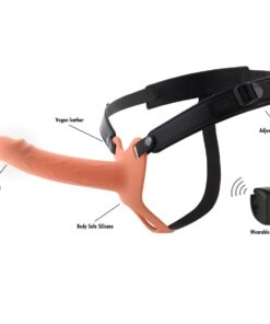 The penis sleeve stands out for its hyper-realistic design that not only increases length but also adds a very satisfying extra thickness on an 18 cm shaft. The main highlight is its vibration system with 10 different modes, controllable via a practical wireless remote that can be worn as a ring. Its internal structure allows it to house the penis, providing firmness and stability, while the adjustable nylon and vegan leather harness ensures a secure and comfortable fit for any silhouette, maintaining total control in every movement.