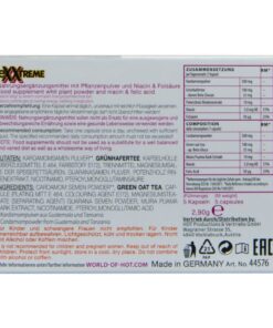 Cardamom Semen Powder, Green Oat Tea, Capsule (Plating Mitt E 464, Colouring Agent E172), Magnesiumstearate (Separating Agent), Guarana Semen Powder, Muira Puama Bark Extract, Nicotinamide, Pteroylmonoglutamic Acid.