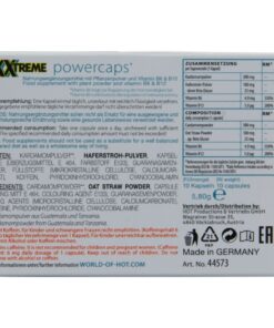 Cardamom powder, Oat Straw Powder, Capsule: (Plating Mitt E 464, Colouring Agent E133), Guarana semen powder, Filling Agents: (Microcrystalline Cellulose, Calcium carbonate), Caffeine, Pyridoxine hydrochloride, Cyanocobalamin.
