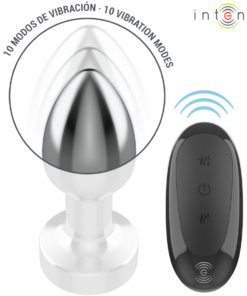 The INTENSE size S vibrating anal plug is the perfect accessory for those looking to explore and enjoy new sensations safely, comfortably, and discreetly. This elegant plug is made of high-quality aluminum, which not only gives it a sophisticated aesthetic but also guarantees long-lasting durability and a cool or warm sensation, ideal for those who enjoy stimulation through temperature changes.
