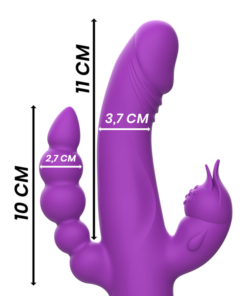 Triple pleasure vibrator with independent motors united by an extra flexible and resistant silicone body, suitable for multiple positions. Ideal to play alone and/or as a couple! Powerful and silent motors with up to 30 vibration modes that combine with each action.