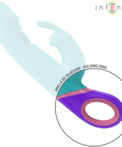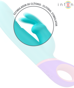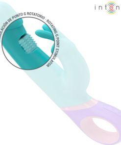 The MONICA vibrator from the INTENSE brand is an elegant rabbit vibrator in an attractive blue color, designed to offer a complete sensual experience thanks to its double stimulation and its innovative rotating stimulator for the G-spot.