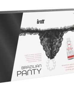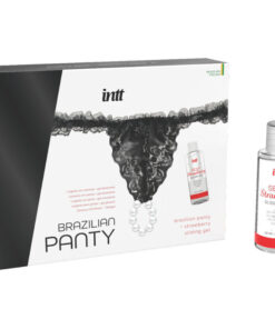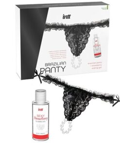 INTT’s Brazilian Panty Black is a sensual lingerie pack with pearls accompanied by a strawberry-flavored water-based gel.
