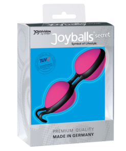 The JOYBALLS box includes instructions for one and a handy satin ball for discreet storage.