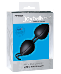 The JOYBALLS box includes instructions for one and a handy satin ball for discreet storage.