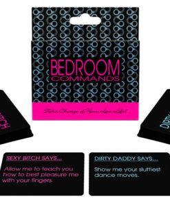 Take control of your love life! Bedroom Commands is a double deck card game of commands. One deck is for the Dirty Daddy and the other is for the Sexy Bitch. Whenever either of you feels like taking charge of your love life, select a card to reveal an action for the evening. Some cards are funny, fun, and sexy. Other cards offer unique sex suggestions for bringing some variety into your relationship.