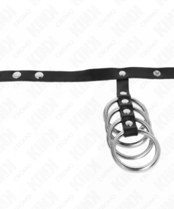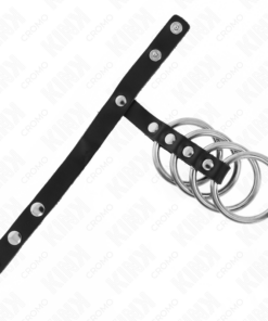 KINK – 4 METAL PENIS RINGS 3.8 CM CONNECTED WITH LEATHER STRAP 22 X 1.5 CM AND PRESSURE CLOSURE