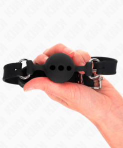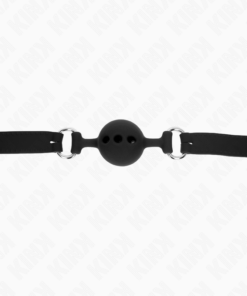 KINK – FULL SILICONE GAG 55 x 2 CM WITH 4 CM BALL SIZE S BLACK ADJUSTABLE 35-51 CM