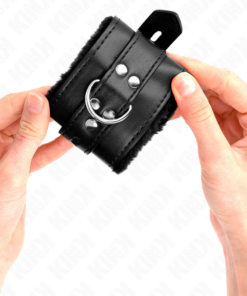 KINK – FUR LINED WRIST RESTRAINTS WITH SQUARE HOLES BLACK AND BLACK BELT ADJUSTABLE 17-29 CM X 6 CM