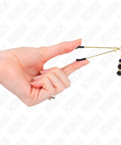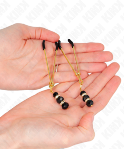 KINK – GOLD THIN NIPPLE CLAMPS WITH 3 BLACK GLASS BEADS 7 CM