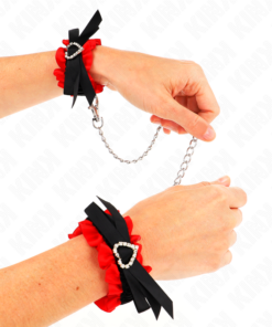 KINK – LACE ELASTIC WRIST RESTRAINTS RED HEART DETAILS ADJUSTABLE 22-35 CM