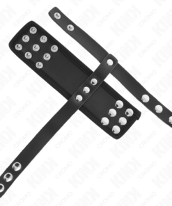 KINK – LEATHER PENIS CAGE RING WITH ADJUSTABLE COATED BALL DIVIDER STRAP