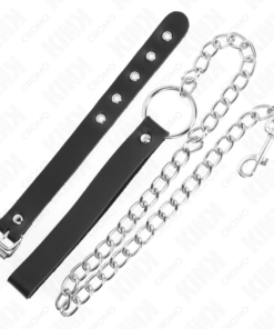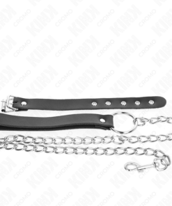 KINK – LEATHER PENIS RING WITH STRAP 21.5 X 2 CM AND METAL CHAIN 60 CM