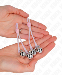 KINK – LUMINOUS SKULL NIPPLE CLAMPS WITH RING BELLS ADJUSTABLE PINK / SILVER