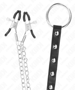 KINK – METAL PENIS RING WITH CHAIN AND ADJUSTABLE NIPPLE CLAMPS