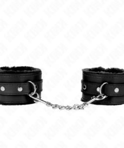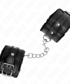 KINK – PREMIUM FUR LINED WRIST RESTRAINTS BLACK WITH BLACK BELT ADJUSTABLE 17-29 CM X 6 CM