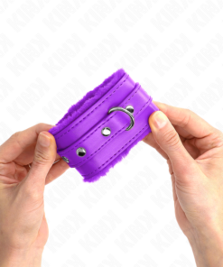 KINK – PREMIUM FUR LINED WRIST RESTRAINTS PURPLE WITH PURPLE BELT ADJUSTABLE 17-29 CM X 6 CM
