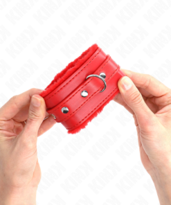 KINK – PREMIUM FUR LINED WRIST RESTRAINTS RED WITH RED BELT ADJUSTABLE 17-29 CM X 6 CM