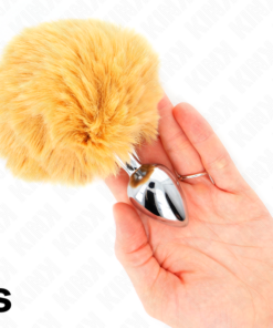 KINK – STAINLESS STEEL PLUG 7 x 3 CM WITH BEIGE FAUX FUR RABBIT TAIL 8 CM