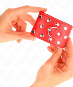 KINK – WRIST RESTRAINTS WITH SNAP FASTEN FULL OF RIVETS RED ADJUSTABLE 19-24 CM X 5.5 CM