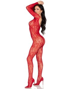 Be captivated by this super-stretchy floral lace bodystocking. This model hugs the body, highlighting your features from head to toe. Thanks to its neckline, it can be worn over the shoulders or in a bardot style. This bodystocking does not have a crotch opening.