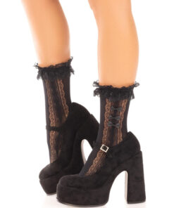 These classic womens socks just got even cuter! With lace ruffles combined with hearts and mini bows, these Leg Avenue anklets are a dream come true. Made from stretch nylon, they can be worn alone with skirts and shorts or layered over tights for a fun, fashionable look.