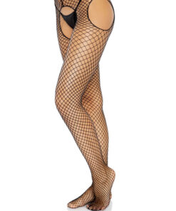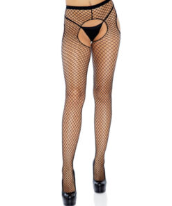 Black fishnet garter pantyhose with crotch opening are a daring and seductive choice designed to enhance sensuality and add a provocative touch to lingerie. These pantyhose combine classic elements with bolder details, creating an impact garment that evokes elegance and sensuality at the same time.